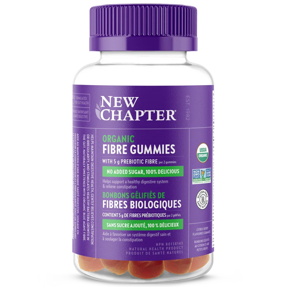 Since 1982, New Chapter has been committed to creating high-quality, thoughtfully sourced supplements. Their Organic Fiber Gummies provide a convenient, plant-based way to support digestive health, delivering 5 g of fiber per 2 gummies. Made with organic blue agave fiber, along with baobab and acacia fibers, these naturally sweetened citrus-berry gummies contain no added sugar and help nourish beneficial gut bacteria. With research showing that only 7% of people meet the recommended daily fiber intake, these gummies offer an easy and enjoyable way to help close that gap. The recommended dose is 2 gummies once daily.